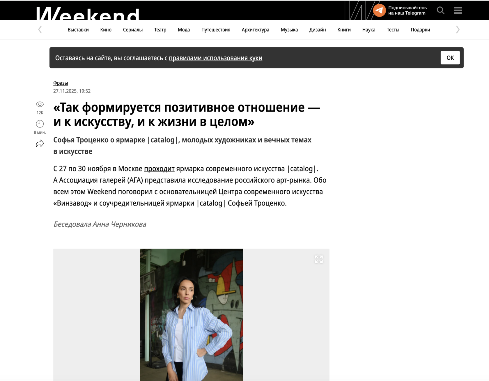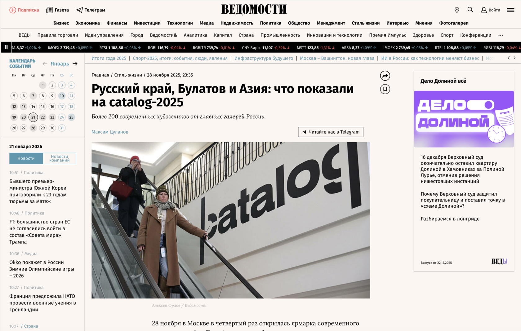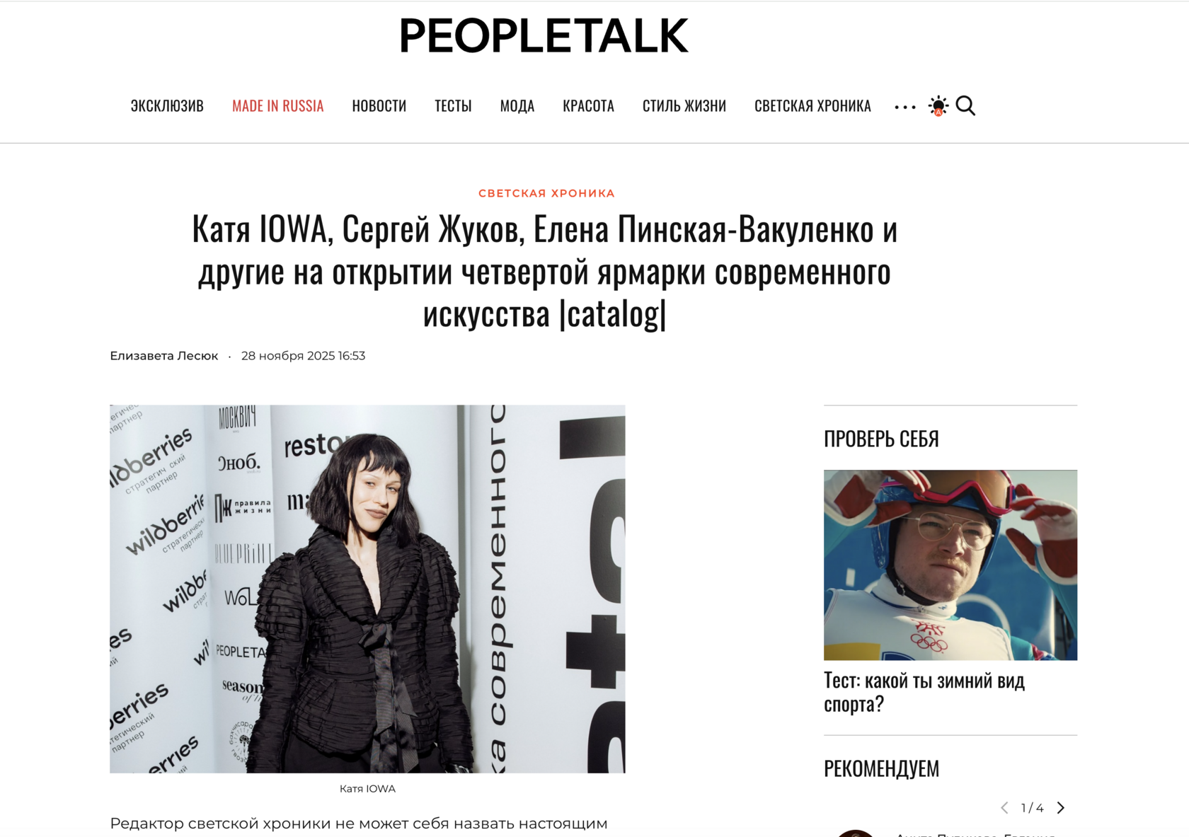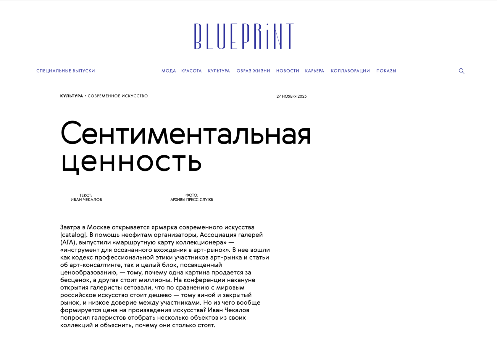 С 28 по 30 ноября 2025 года в Москве проходил четвертый выпуск ярмарки современного искусства |catalog|. В этом году площадкой впервые стал жилой квартал «Золотой» на Софийской набережной. В ярмарке приняли участие 60 российских галерей. Они представили основной состав художников и вывели на рынок по одному новому имени. Проект был инициирован галеристами Александром Шаровым, Дмитрием Ханкиным, Алиной Крюковой и Софьей Троценко при поддержке Ассоциации галерей.