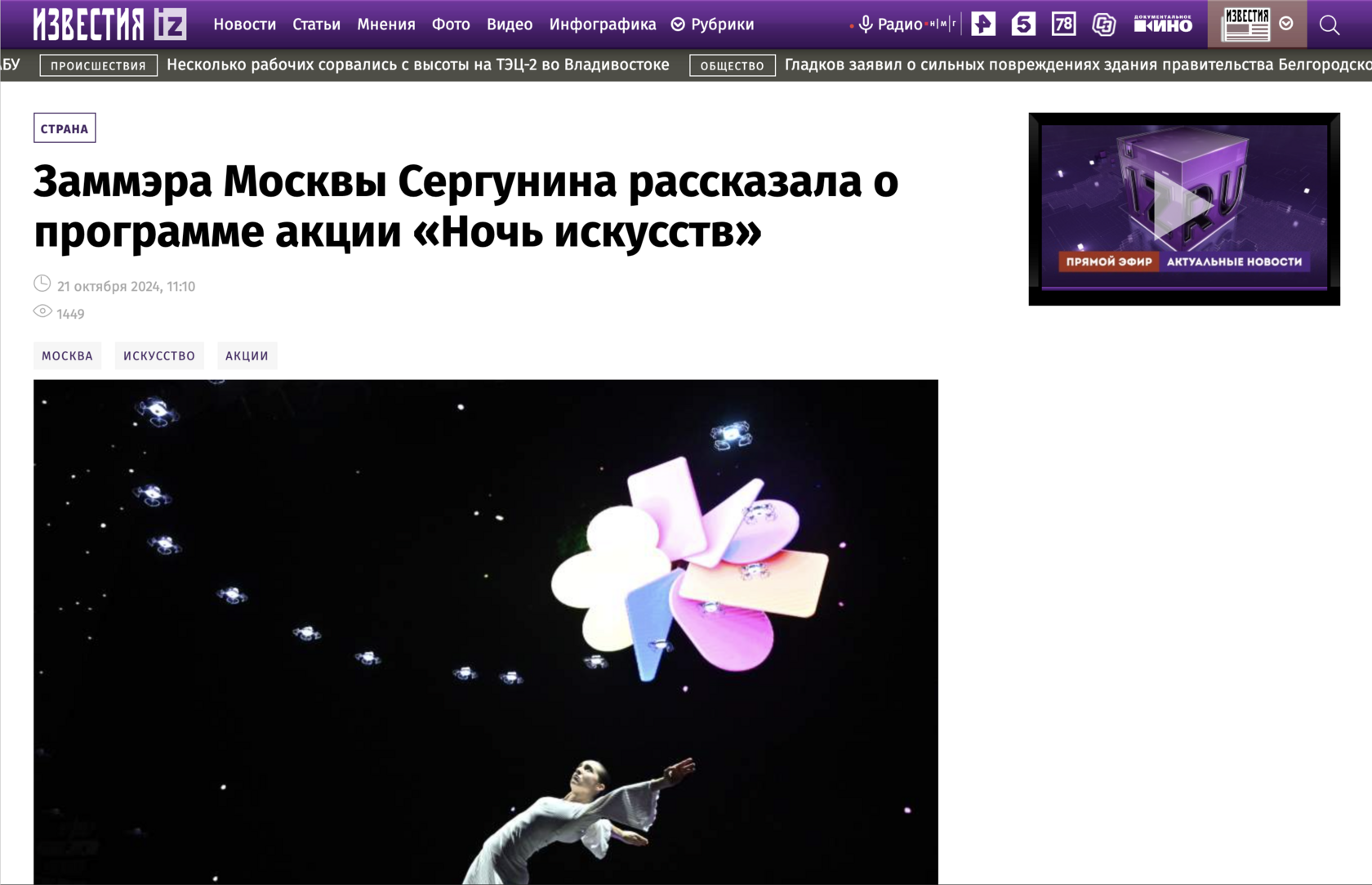 телеканалы Россия 1, Культура, Москва 24, НТВ, МИР, Рен ТВ, ТВЦ, радио Орфей, Культура, Москва FM, Бизнес FM, ТАСС, РИА Новости, Интерфакс, Известия, Московский комсомолец, Комсомольская правда, Российская газета, Вечерняя Москва, Ведомости.Город, Metro, Независимая газета, Правила жизни, Forbes, The City, Афиша, KudaGo и другие