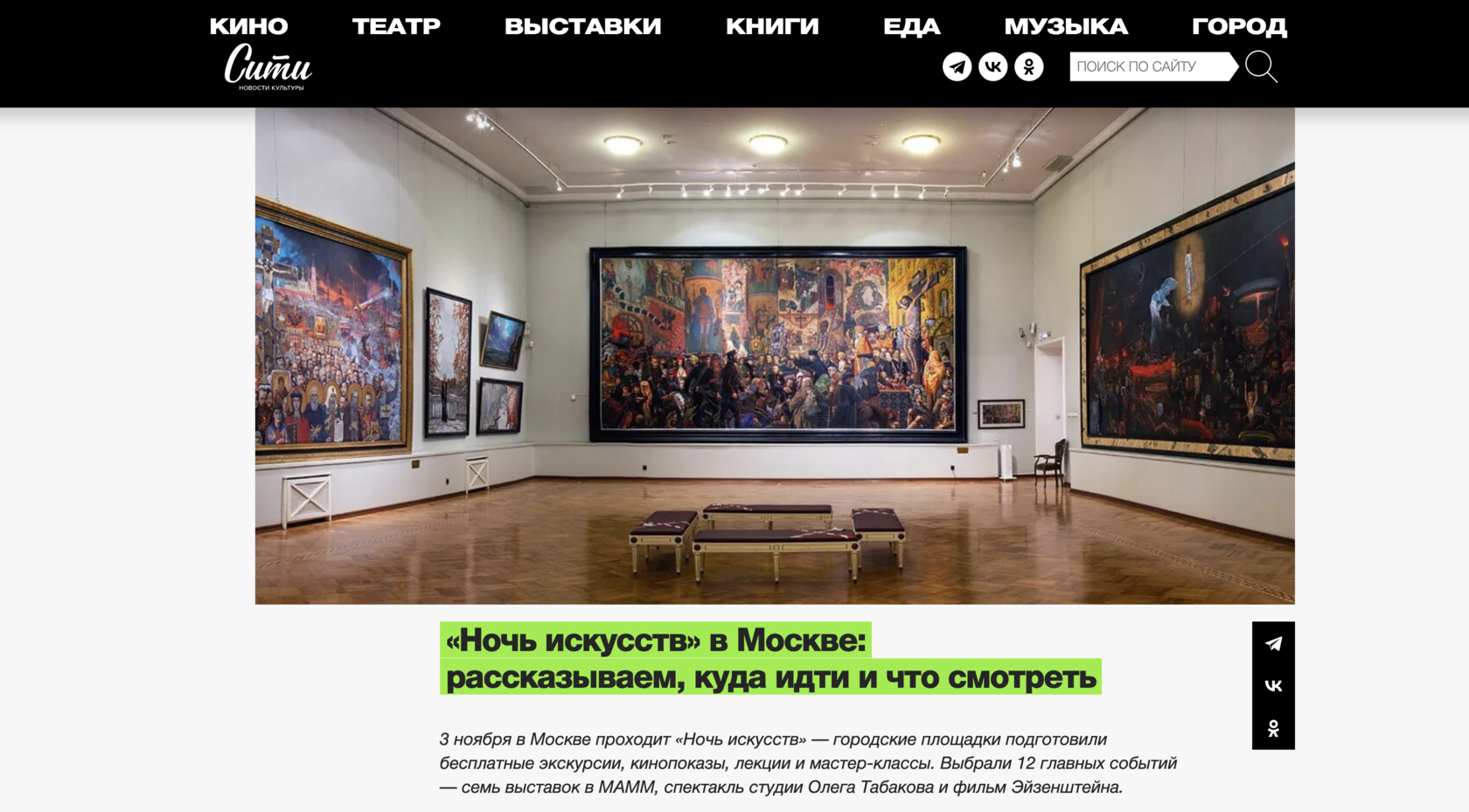 3 ноября в Москве пройдет ежегодная акция «Ночь искусств». Для посетителей подготовили свыше 300 событий: концерты, спектакли, экскурсии, поэтические чтения, выставки и даже музыкальный круиз.